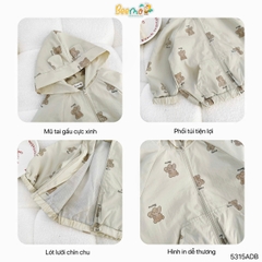 🐻 Hoạ tiết in tràn gấu cực yêu, kết hợp mũ tai gấu siêu xinh, bé mặc vào là đáng yêu hết nấc